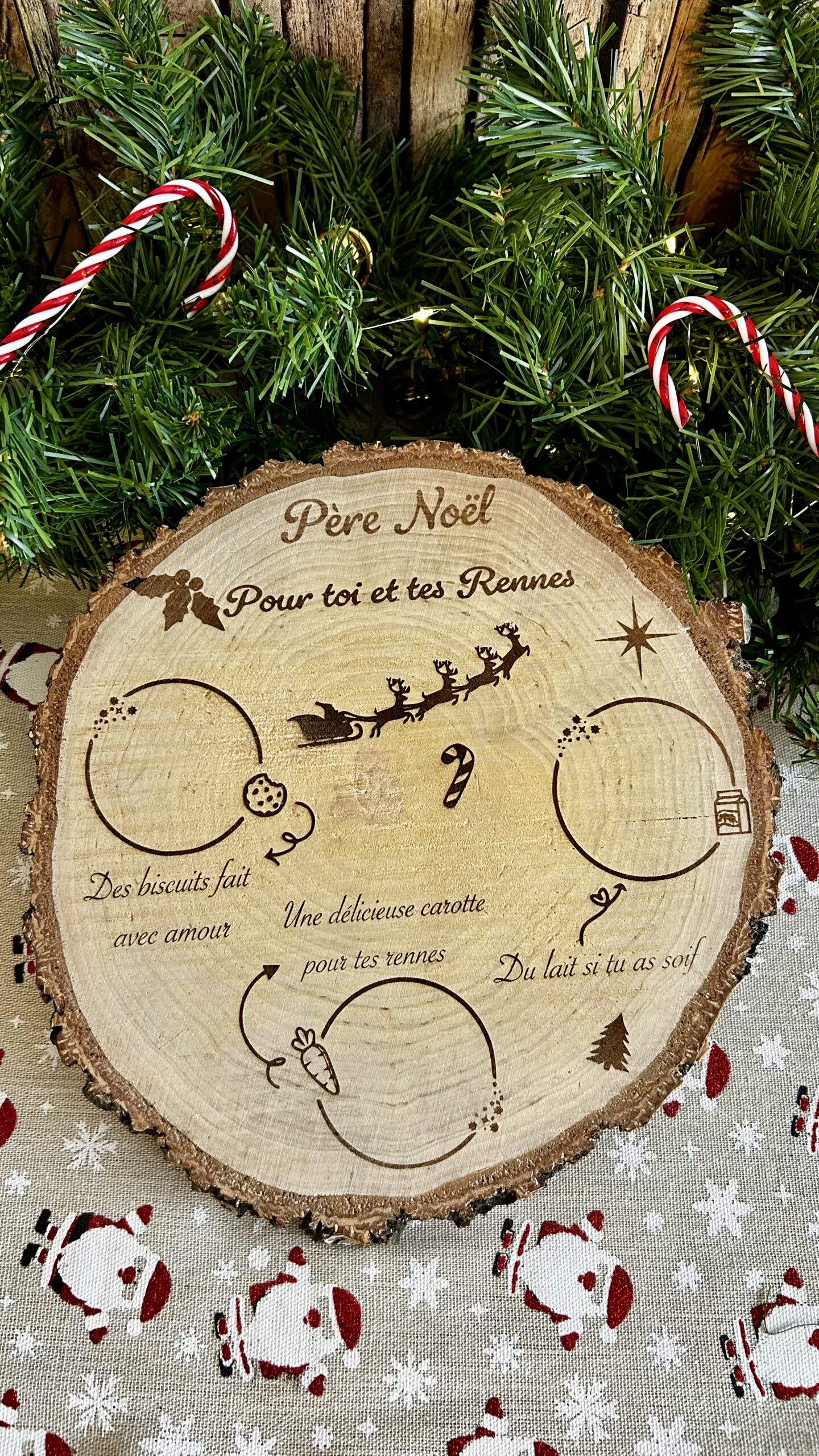 Préparez la venue du Père Noël comme il se doit avec ce magnifique plateau en rondin de bois naturel